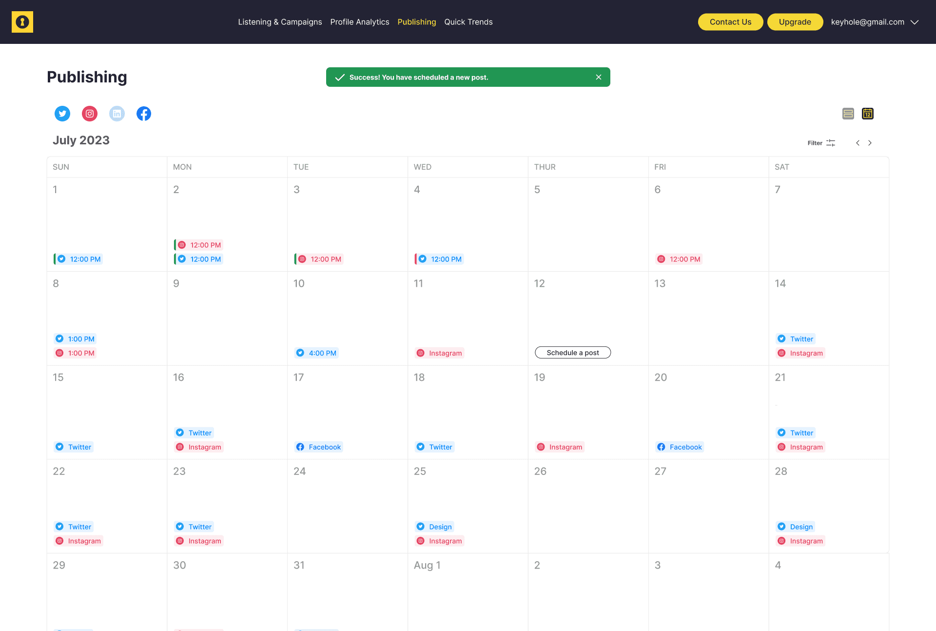 At Keyhole, their core value offering is Social Listening and Profile Analytics. It is a platform that helps marketers to measure the full impact of their social media campaigns.