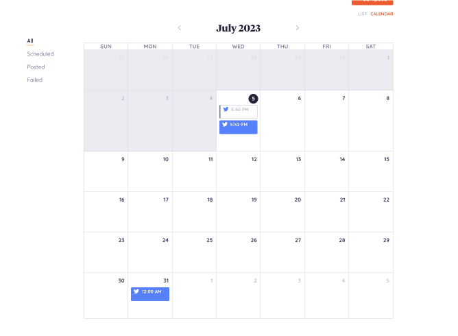 Failed posts have a similar left red outline as the ones seen in calendar view that would draw users’ attention