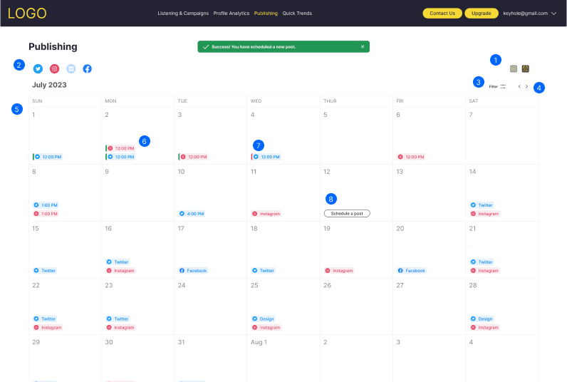 For the next part on status of scheduled posts, I broke it down to calendar view and list view.