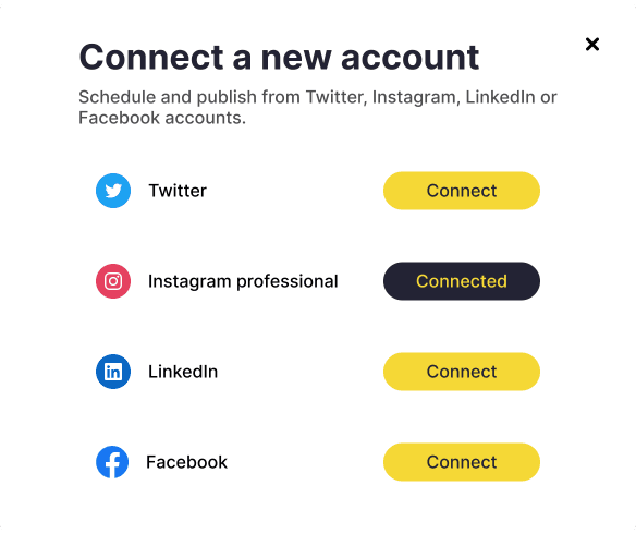 Social media accounts will be on the left side right under the heading. This creates less cognitive load for users to figure out which social media account is connected.
